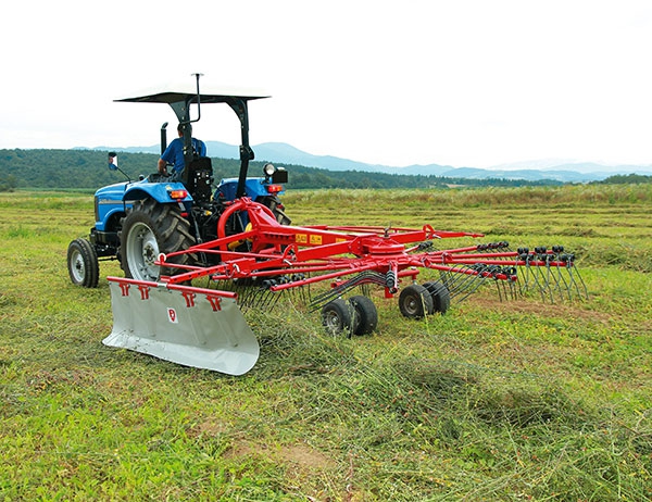 Mit einer Arbeitsbreite von 430cm, speziell geformten Zinken und einer stabilen Konstruktion aus Stahl lässt das Model FS430 keine Wünsche übrig. Trotz der Größe braucht dieser Schwader nur einen Kleintraktor mit 30 PS oder mehr.
